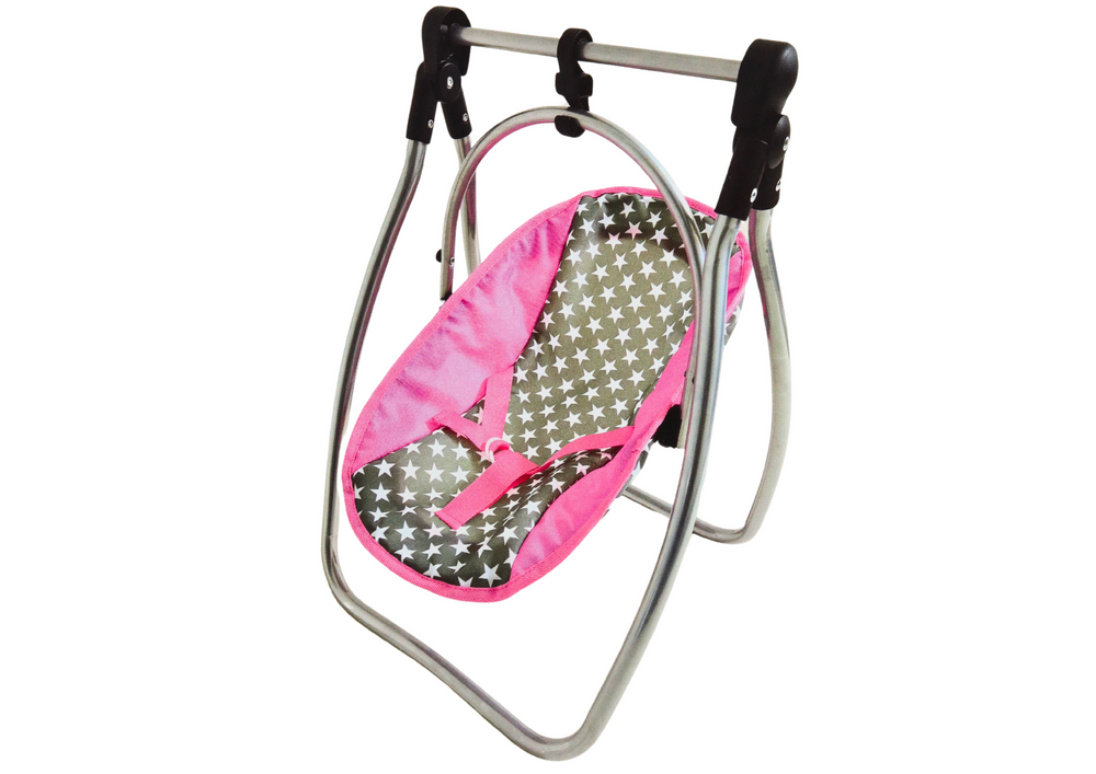 Žaislinės sūpynės 2in1 lėlei Alice, pilkai rožinės