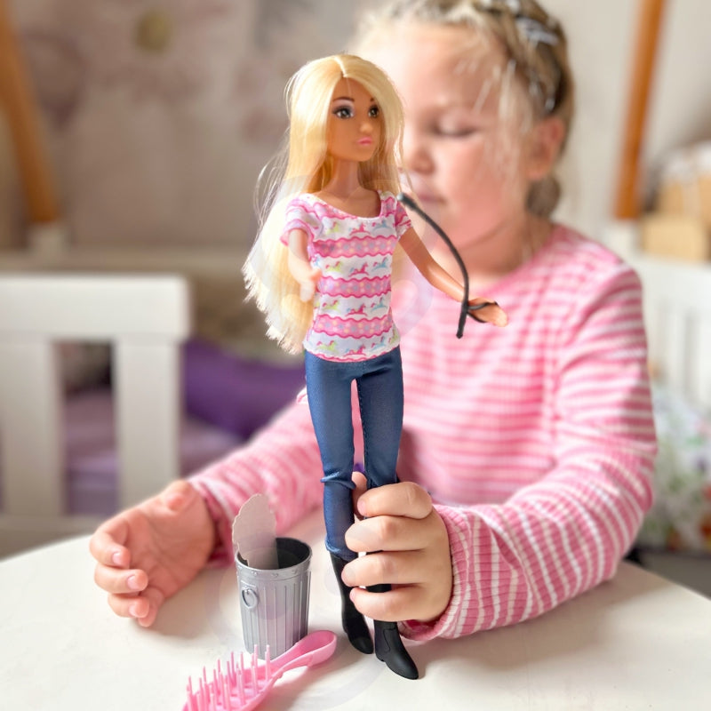 - Lėlės plaukus ir žirgo girią galima šukuoti