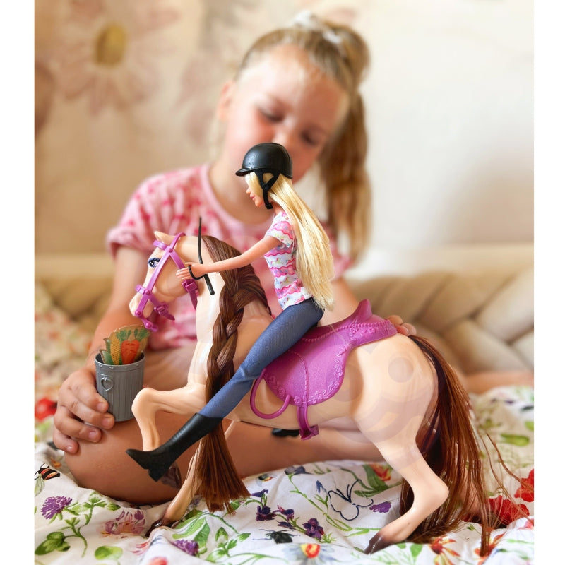 Žaislinis arklio ir lėlės rinkinys su priedai, WOOPIE