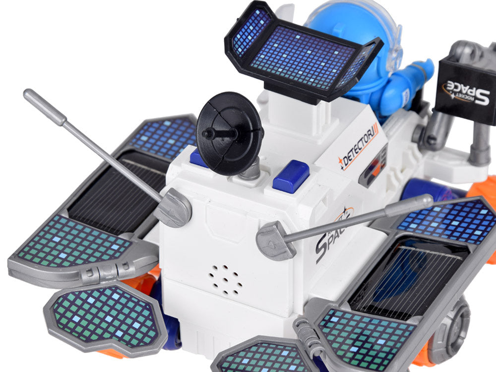 Nuotykių ir judančių dalių kupinas žaislinis automobilis kosminis roveris, kuris nukels jus į tarpžvaigždinių atradimų pasaulį!“ Ši transporto priemonė turi šešias padangas ir pažangią pakabą, kad be vargo važiuotų uolėtomis vietovėmis. Vaikai gali prisijungti prie drąsios įgulos, tyrinėjančios planetos paviršių ir atrandančios paslaptingus trykštančius geizerius bei žavias ateivių gyvybės formas.
