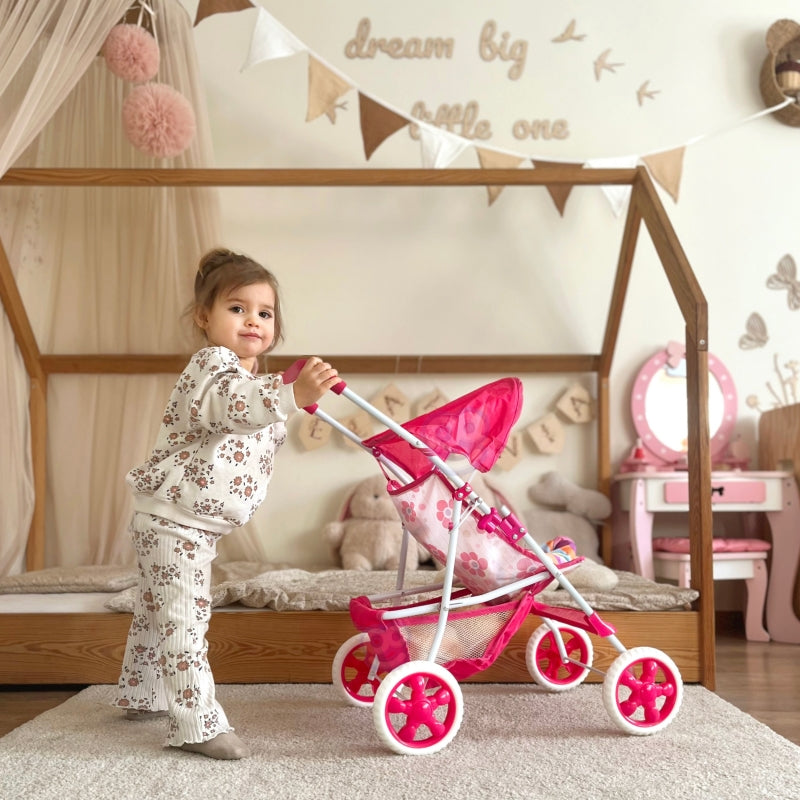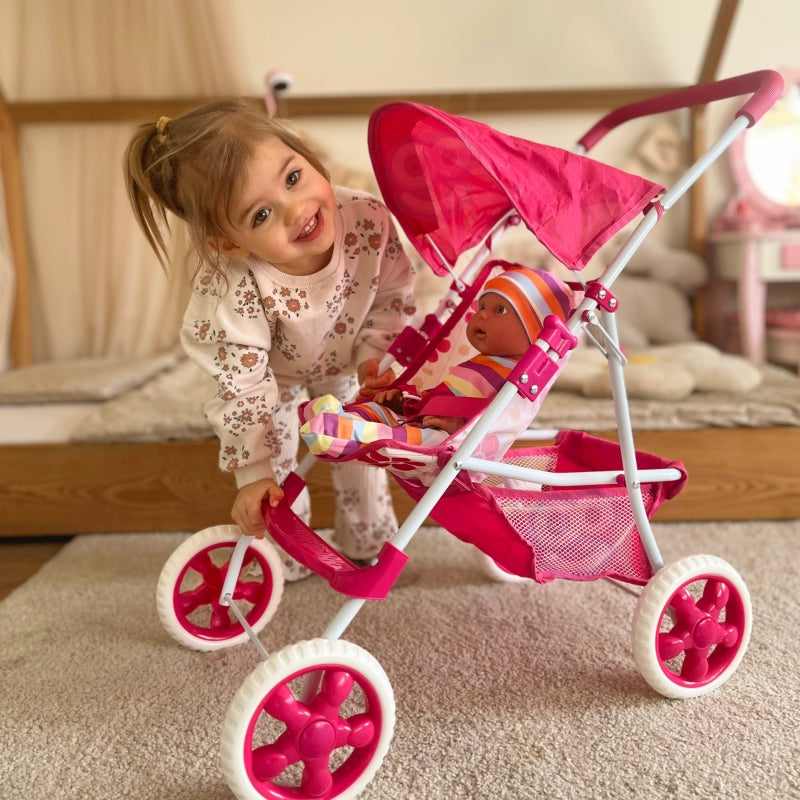 Woopie lėlių vežimėlis yra puikus pasirinkimas bet kuriam mažajam žaidimų su lėlėmis mėgėjui. Jis išsiskiria lengvu, bet labai stabiliu rėmu, užtikrinančiu patogumą ir saugumą jį naudojant. Vežimėlyje įrengta atrama kojoms, stogelis apsaugai nuo saulės, saugos diržai ir praktiškas krepšelis smulkiems daiktams, todėl jis užtikrina visišką funkcionalumą ir patogumą. Dėl stilingo dizaino jis tampa unikaliu bet kurios lėlės aksesuaru.