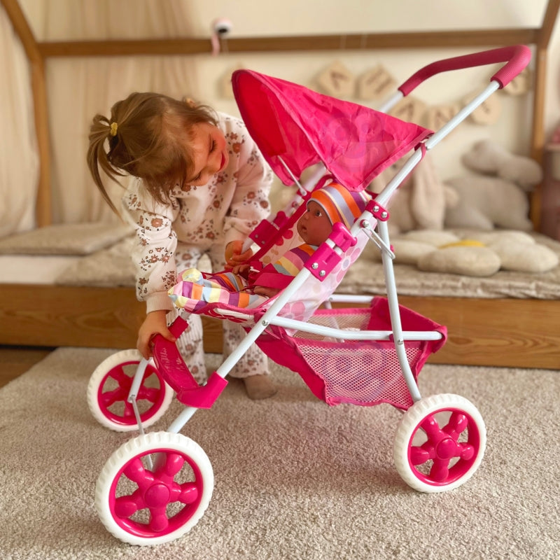 Žaislinis lėlių vežimėlis, rožinis, WOOPIE