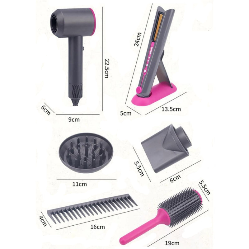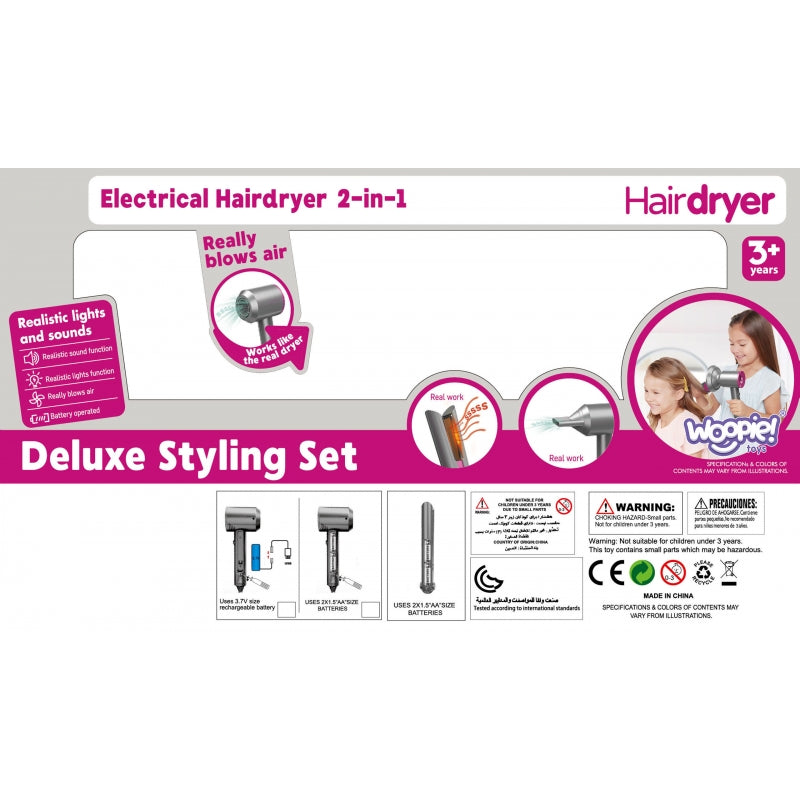 Žaislinis plaukų džiovintuvas tiesintuvas su priedais, WOOPIE