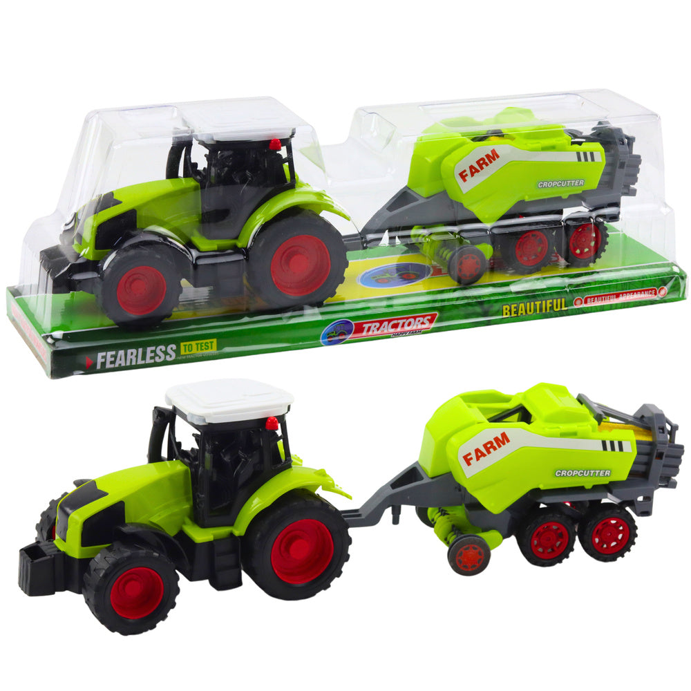 Žaislinis traktoriaus komplektas su šieno presu, žalias