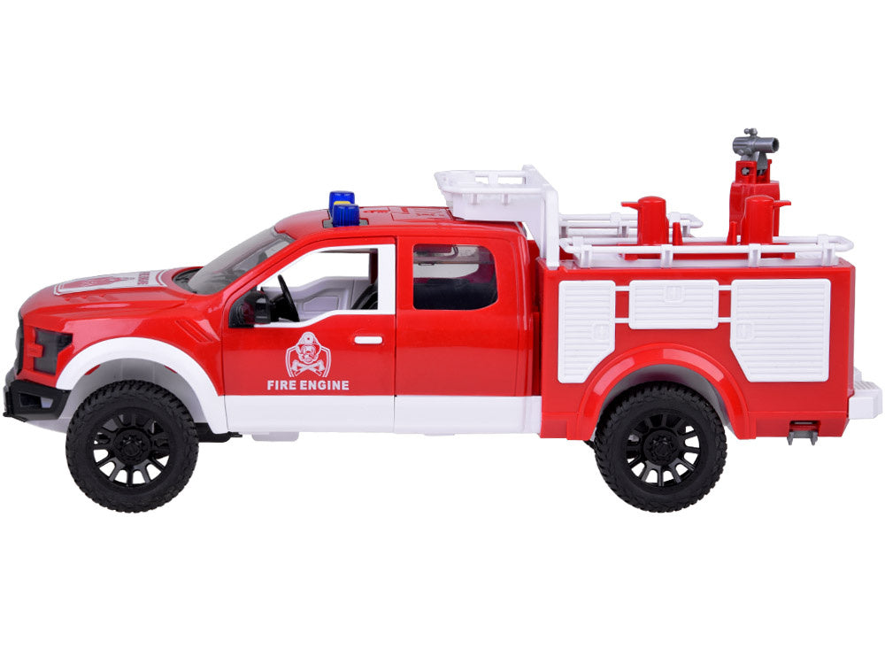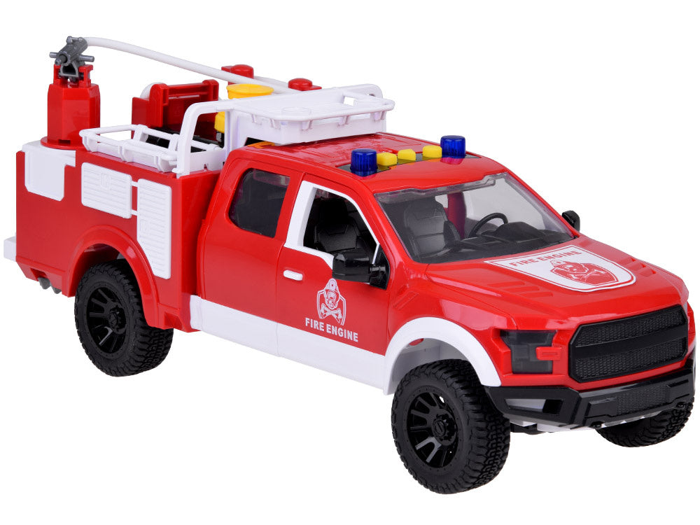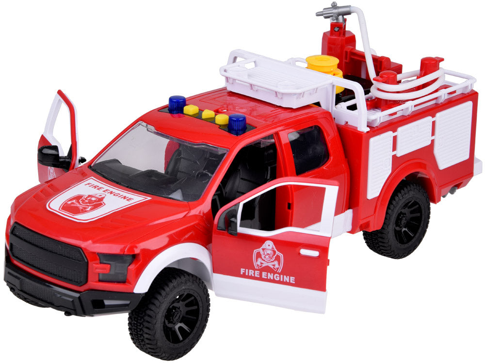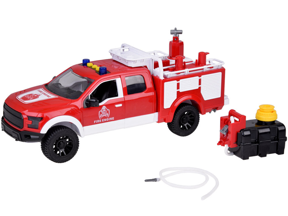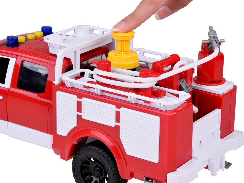 Gelbėkite miestą nuo gaisro su fantastišku gaisriniu automobiliu, kuris gali kaupti vandenį ir turi besisukančią žarną, kad būtų lengviau gesinti prekes! Ant jo stogo yra ilga žarna, kurią galima pasukti įvairiomis kryptimis ir nukreipti vandens srovę tiksliai ten, kur reikia. Dėl specialaus siurblio per žarną galima pumpuoti tikrą vandenį, kad gaisro gesinimas būtų tikroviška pramoga. Automobilis yra raudonos spalvos, su mirksinčiais žibintais ir sirenomis, bet kada pasiruošęs veikti ir gelbėti žmones bei gyvūnus!