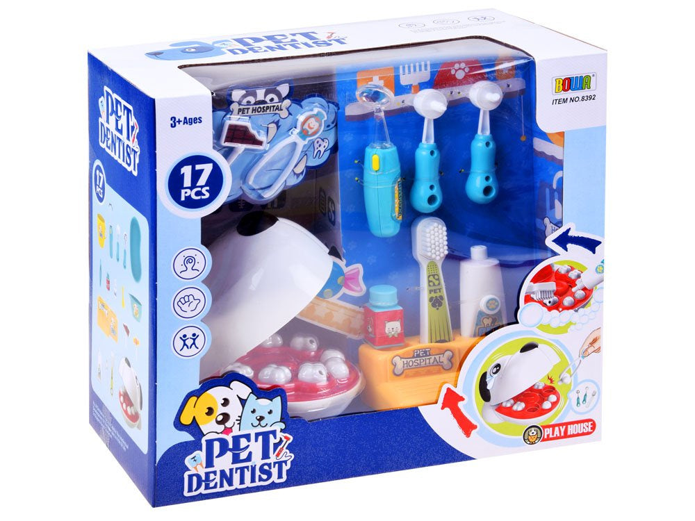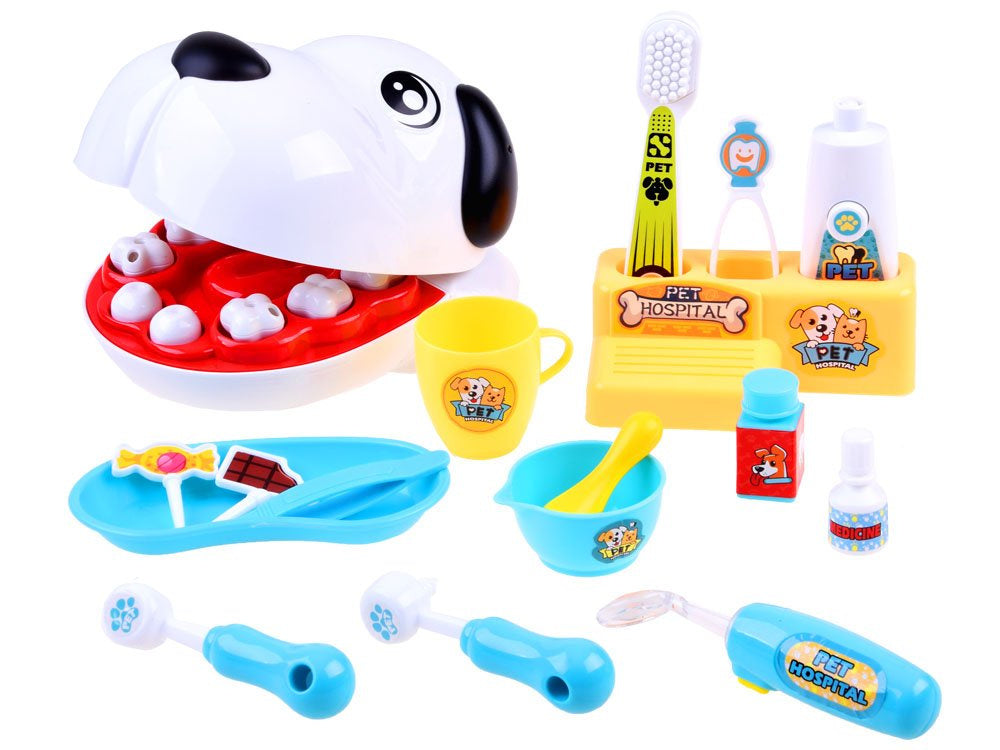 Mažojo veterinarijos gydytojo odontologo edukacinis rinkinys šuniui – pasiūlymas kiekvienam vaikui, norinčiam pasirūpinti savo augintinio dantukais. Rinkinys, skirtas mokymuisi ir pramogoms kiekvienam vaikui.