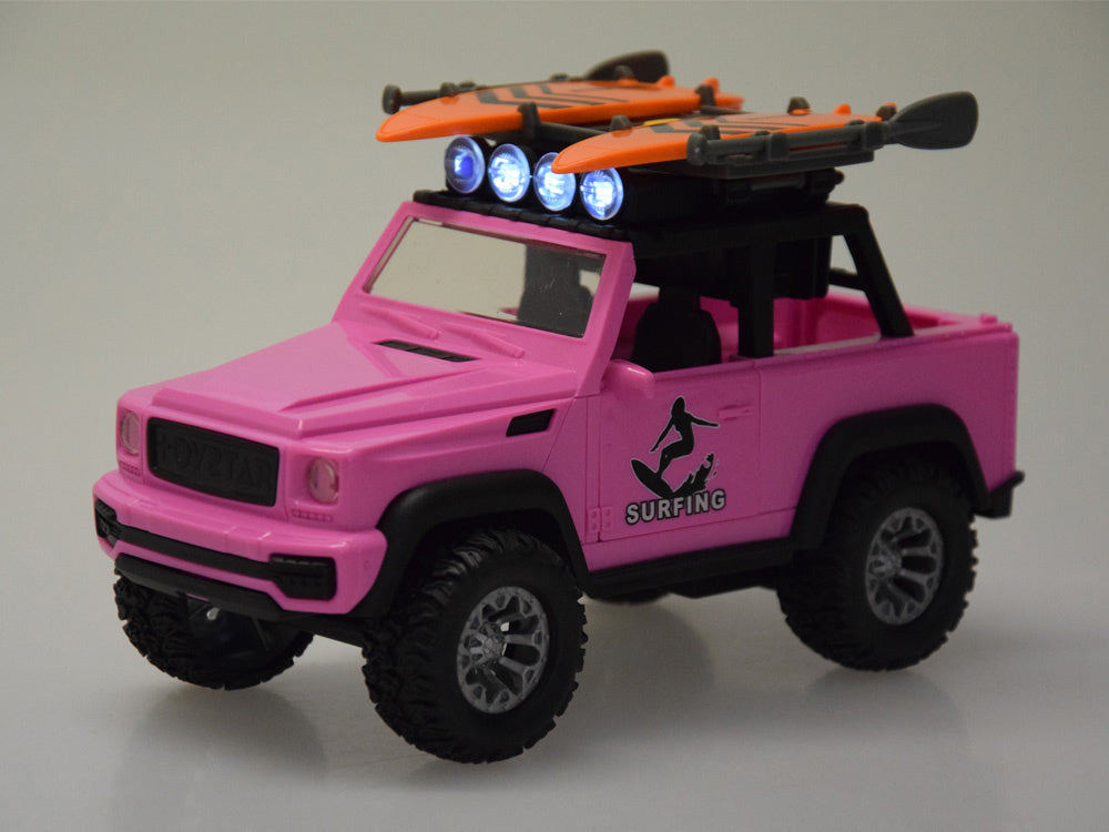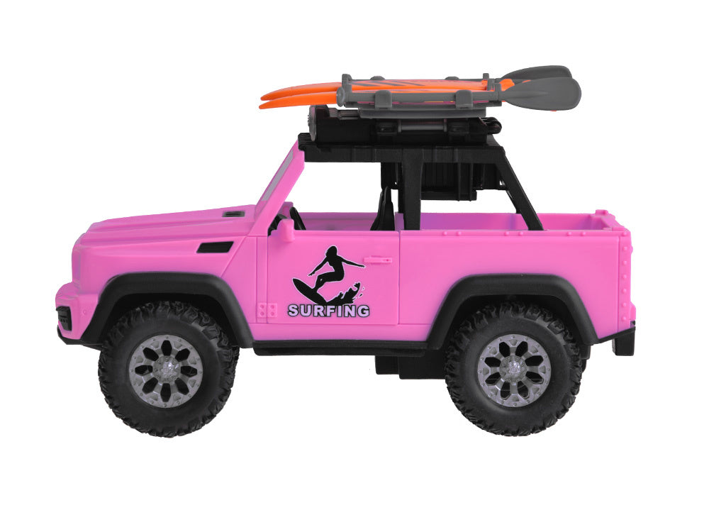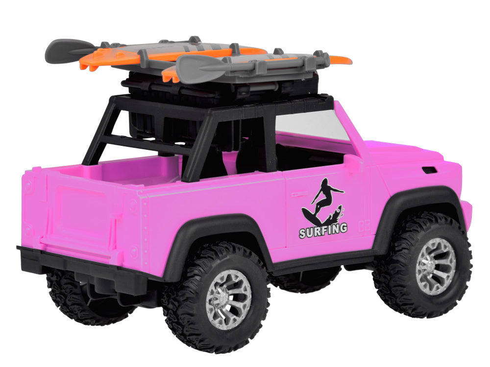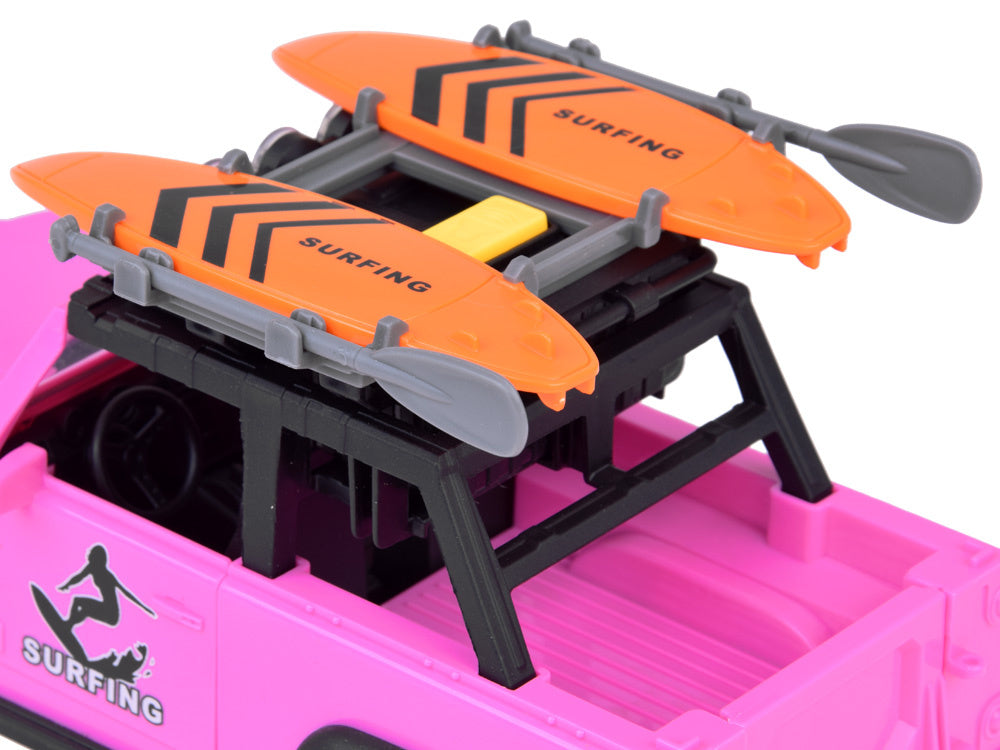 Žaislinis visureigis su stogo bagažine ir burlentėmis, rožinis