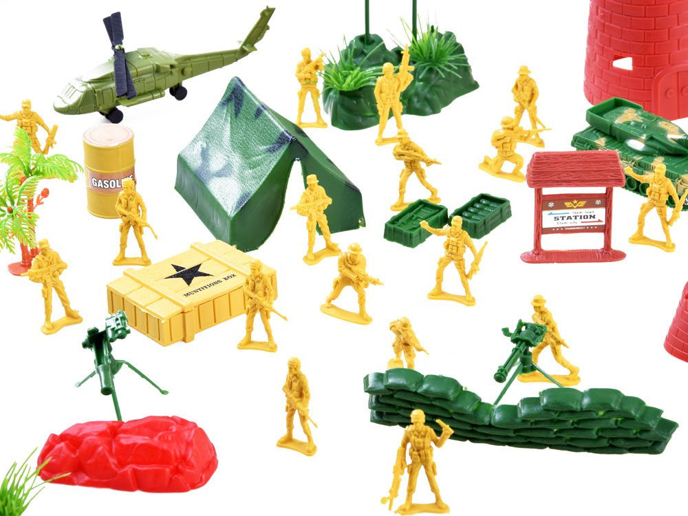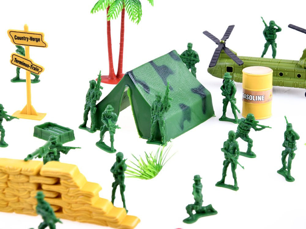 Šis nuostabus žaislinių kareivių rinkinys, skirtas žaisti armijos žaidimus, planuoti sekimą ir pan., su karine veikla susijusius žaidimus. Plastikinės karių figūrėlės ir visas mūšio arsenalas suteiks daug kūrybinių pramogų kiekvienam vaikui bei jo tėveliams.
