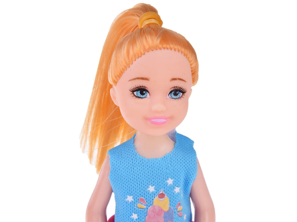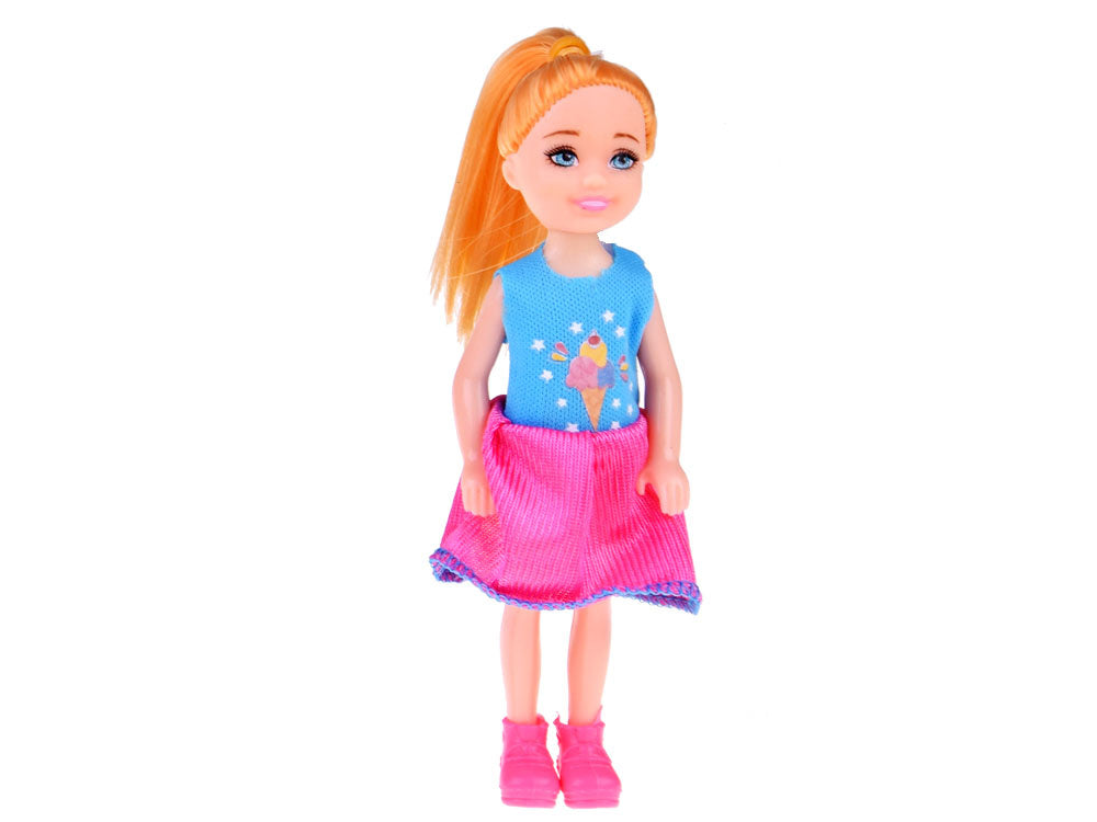 Maža lėlė, su kuria galima žaisti. 13 cm aukščio lėlė bus ideali kiekvienos mažo vaiko draugė. Dėl mažo dydžio lėlė gali keliauti su vaiku į darželį, pas gydytoją, pasivaikščioti, tilps į bet kurią kuprinę ar rankinę. Jos rankos ir kojos yra judančios. Lėlė aprengta spalvinga suknele. Ant kojų ji avi rožinius batelius. Naudodamiesi dideliu siūlomų spalvų ir atspalvių asortimentu galite sukurti gražią kolekciją. Lėlė supakuota į akį traukiančią pakuotę, puikiai tinkančią dovanai.