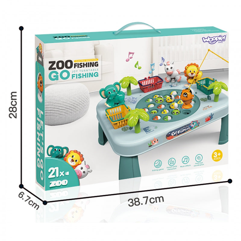 WOOPIE žuvų gaudymo žaidimas su stalu yra puiki idėja žaisti kartu su šeima! Šis nepaprastas stalas - tai vartai į nesibaigiančias pramogas visai šeimai ir draugams. Jo spalvingas dizainas traukia dėmesį ir skatina žaisti kartu. Stalo šonuose esantys krepšiai yra ne tik praktiškas priedas, bet ir varžybų elementas. Kad žaidimas būtų malonesnis, stalas skleidžia melodiją ir garso efektus!